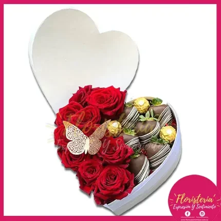 Caja Corazón Mediana en Rosas | Fresas de Chocolate